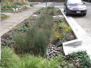 Right: Roadside Rain Garden in Portland, Oregon (thanks to Gary Grant; photo by Dusty Gedge).